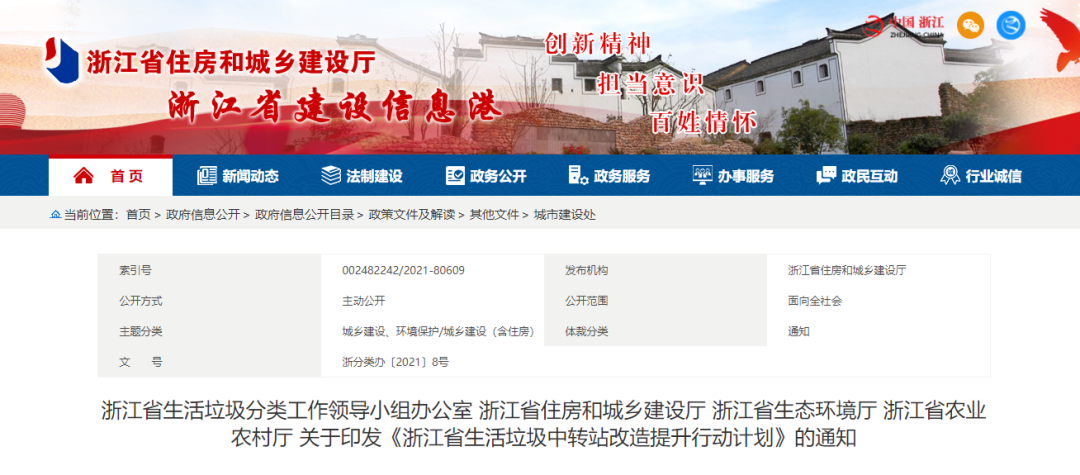 文章導(dǎo)讀10月15日,浙江省生活垃圾分類工作領(lǐng)導(dǎo)小組辦公室、浙江省住房和城鄉(xiāng)建設(shè)廳、浙江省生態(tài)環(huán)境廳、浙江省農(nóng)業(yè)農(nóng)村廳聯(lián)合印發(fā)《浙江省生活垃圾中轉(zhuǎn)站改造提升行動(dòng)計(jì)劃》。計(jì)劃要求,到2022年底,所有大、中型中轉(zhuǎn)站完成改造提升;到2023年底,全省50%以上的中轉(zhuǎn)站完成改造提升;到2025年底,全省所...