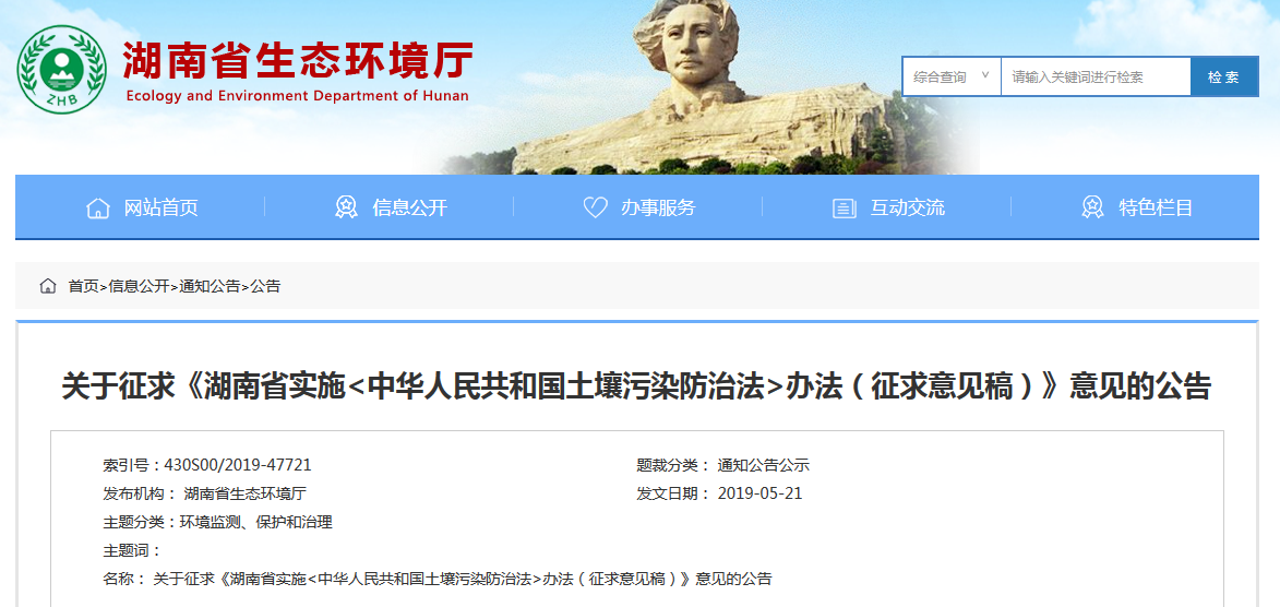 近日,湖南省生態(tài)環(huán)境廳發(fā)布《湖南省實(shí)施<中華人民共和國(guó)土壤污染防治法>辦法(征求意見(jiàn)稿)》,詳情如下:根據(jù)省人大立法計(jì)劃,我廳組織起草了《湖南省實(shí)施<中華人民共和國(guó)土壤污染防治法>辦法(征求意見(jiàn)稿)》(見(jiàn)附件)。為提高立法質(zhì)量,現(xiàn)公開(kāi)征求意見(jiàn),請(qǐng)將修改意見(jiàn)通過(guò)傳真或電子郵件等...