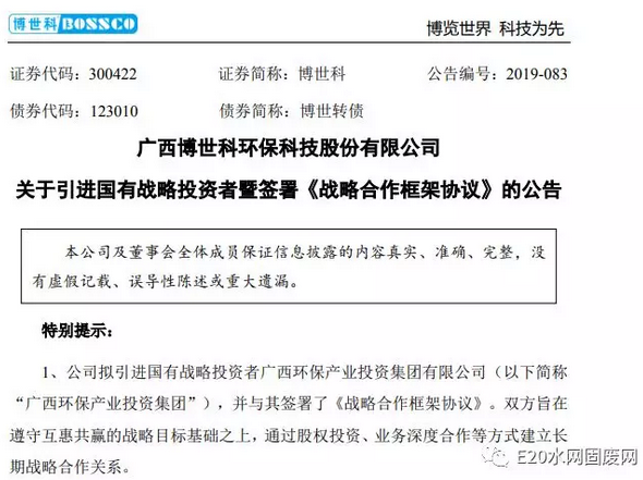 5月23日晚間,博世科公告,公司擬引進(jìn)國(guó)有戰(zhàn)略投資者廣西環(huán)保產(chǎn)業(yè)投資集團(tuán)有限公司,并與其簽署了《戰(zhàn)略合作框架協(xié)議》。雙方旨在遵守互惠共贏的戰(zhàn)略目標(biāo)基礎(chǔ)之上,通過(guò)股權(quán)投資、業(yè)務(wù)深度合作等方式建立長(zhǎng)期戰(zhàn)略合作關(guān)系。根據(jù)協(xié)議,廣西環(huán)保產(chǎn)業(yè)投資集團(tuán)擬以股權(quán)方式對(duì)博世科進(jìn)行長(zhǎng)期戰(zhàn)略投資,具體投資金額、投資時(shí)間...