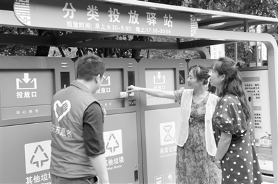 浙江推行“減桶并點”,優(yōu)化垃圾分類。圖為吳興區(qū)環(huán)渚街道某小區(qū),志愿者向居民宣傳即將投放的分類投放驛站。新華社記者 翁忻旸攝從去年開始,浙江省多個城市開始推行“兩定四分”的垃圾分類模式,拉開了以全品類垃圾治理為核心的“垃圾革命”,為全國推行垃圾分類工作貢獻了“浙江經(jīng)驗”。微風徐徐,炊煙裊裊。干凈整潔的...