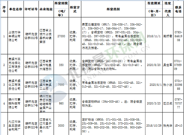 日前省環(huán)保廳發(fā)布了江西省《經(jīng)營許可證》持證單位名單(省廳審批)2018年9月16日更新,具體內(nèi)容如下:延伸閱讀: