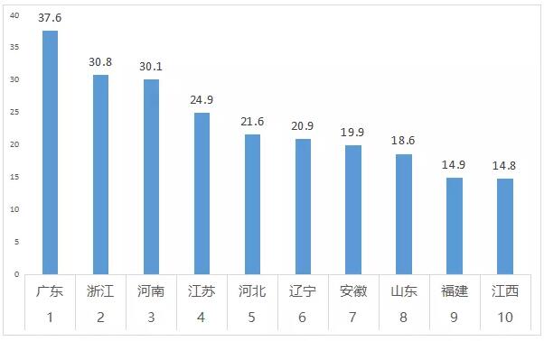 截止2018年9月30日,2018年度前九個月的全國新簽?zāi)曩M(fèi)總額高達(dá)355億,比2017年全年總額高出37億。的高速增長,除了廣東、浙江、山東等傳統(tǒng)環(huán)衛(wèi)大省持續(xù)發(fā)力外,安徽、河南、河北、江西等新興環(huán)衛(wèi)大省的迅速崛起,更是蔚為壯觀……前十省份新簽項目年費(fèi)占全國總額的66% 截止2018年9月30日,新...