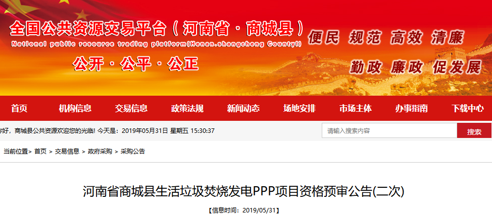 河南商城2.7億垃圾焚燒PPP項(xiàng)目啟動二次資格預(yù)審