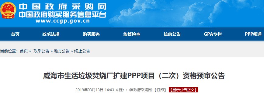 中國環(huán)聯(lián)網(wǎng)獲悉,3月13日,山東省威海市生活垃圾焚燒廠擴(kuò)建PPP項目發(fā)布二次資格預(yù)審公告。1、項目概況:1.1項目名稱:威海市生活垃圾焚燒廠擴(kuò)建PPP項目1.2項目編號:SDGP3710002019020000221.3采購人:威海市園林管理局2、采購需求2.1本項目主要工程內(nèi)容為500噸/日處理量...