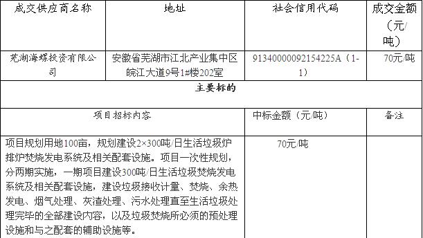 近日,芒市住房和城鄉(xiāng)規(guī)劃建設(shè)局發(fā)布了芒市生活垃圾焚燒發(fā)電項(xiàng)目特許經(jīng)營(yíng)采購(gòu)成交結(jié)果公告,詳情如下:招標(biāo)編號(hào):YNBHTXZBZXYXGS201901一、項(xiàng)目信息1、項(xiàng)目名稱(chēng):芒市生活垃圾焚燒發(fā)電項(xiàng)目特許經(jīng)營(yíng)采購(gòu)2、預(yù)算金額:17000萬(wàn)元3、交易編號(hào):MSCG(磋)2019- 003(D)4、采購(gòu)公告...