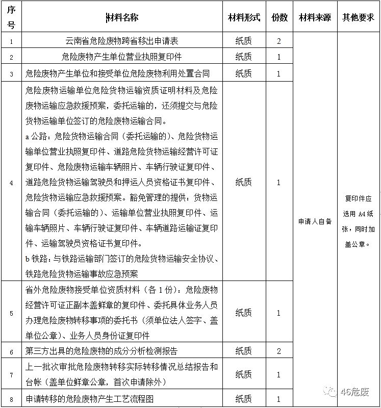 一、受理范圍申請(qǐng)內(nèi)容:危險(xiǎn)廢物轉(zhuǎn)移跨省審批許可。申請(qǐng)人范圍及申請(qǐng)條件:云南省行政區(qū)域內(nèi)申請(qǐng)將危險(xiǎn)廢物轉(zhuǎn)移到其他省(自治區(qū)、直轄市)進(jìn)行貯存、利用、處置的危險(xiǎn)廢物產(chǎn)生單位。(跨省移出)云南省行政區(qū)域內(nèi)申請(qǐng)將其他?。ㄗ灾螀^(qū)、直轄市)危險(xiǎn)廢物轉(zhuǎn)移到省內(nèi)進(jìn)行貯存、利用、處置的危險(xiǎn)廢物經(jīng)營(yíng)單位。(跨省移入)不...