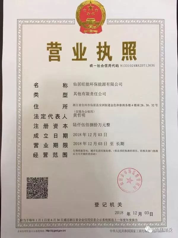 2018年12 月 3日,仙居縣市場監(jiān)督管理局頒發(fā)營業(yè)執(zhí)照。仙居旺能環(huán)保能源有限公司宣告成立?。?!實(shí)現(xiàn)了國企借力上市公司,創(chuàng)新發(fā)展、合作共贏,助力國資國企改革取得新成果。項(xiàng)目背景:仙居縣生活垃圾焚燒發(fā)電PPP項(xiàng)目由仙居縣人民政府授權(quán)仙居縣城市建設(shè)發(fā)展集團(tuán)有限公司作為政府方出資,與社會資本浙江旺能環(huán)保...