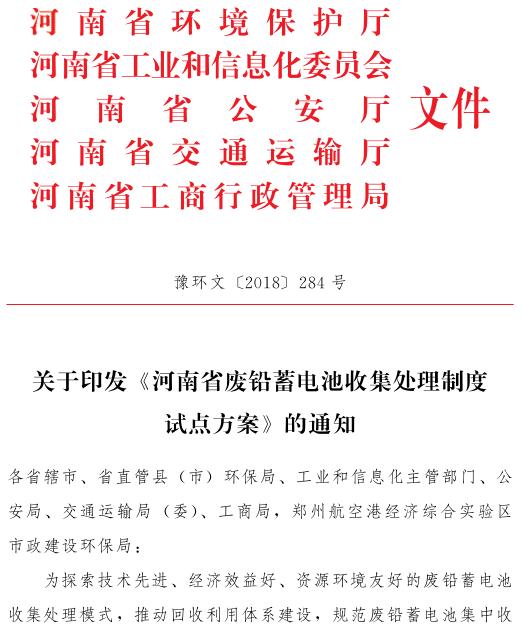 日前,河南省五部門聯(lián)合印發(fā)了《河南省廢鉛蓄電池收集處理制度試點(diǎn)方案》,《方案》提出,到 2018 年底,構(gòu)建廢鉛蓄電池集中收集、跨區(qū)域轉(zhuǎn)運(yùn)方式和全過(guò)程溯源管理模式,年底總結(jié)試點(diǎn)地區(qū)經(jīng)驗(yàn),在全省范圍內(nèi)推行。到 2019 年底,試點(diǎn)企業(yè)落實(shí)廢鉛蓄電池規(guī)范化管理制度,建成廢鉛蓄電池逆向物流回收體系。到 2...