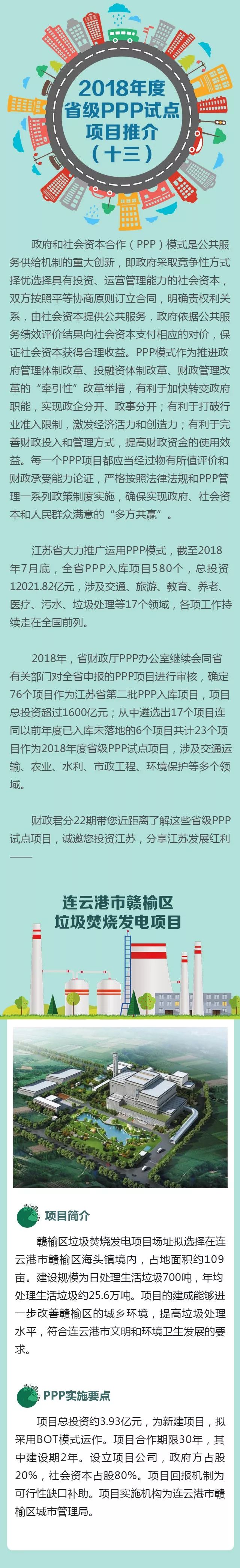 2018省級(jí)PPP試點(diǎn)項(xiàng)目推介之十三連云港市贛榆區(qū)垃圾焚燒發(fā)電項(xiàng)目2018省級(jí)PPP試點(diǎn)項(xiàng)目推介之十一新沂市生活垃圾焚燒發(fā)電項(xiàng)目原標(biāo)題:2018江蘇省級(jí)PPP試點(diǎn)項(xiàng)目推介(垃圾焚燒專場(chǎng))