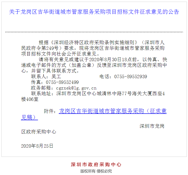文章導(dǎo)讀2019年,深圳市政府計(jì)劃引進(jìn)“城市管家”概念,在此背景下,“物管城市”模式開始浮出水面,基本思路為:統(tǒng)籌整合環(huán)境衛(wèi)生、綠化管養(yǎng)、市容管控、數(shù)字化城管等城市管理服務(wù),委托專業(yè)的物管企業(yè)開展市政一體化運(yùn)營,構(gòu)建“管理+服務(wù)+運(yùn)營”的城市治理新模式。8月25日,深圳市政府采購中心發(fā)布“深圳市龍崗...