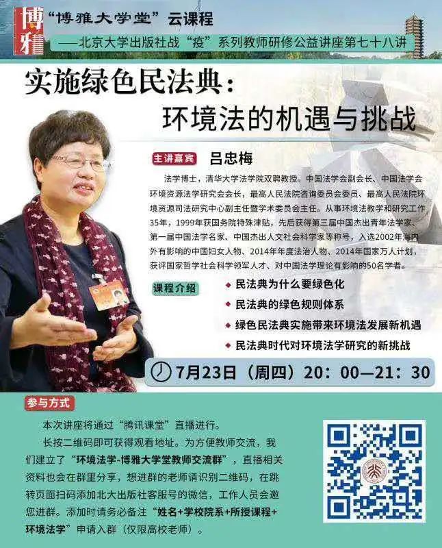呂忠梅:綠色民法典實施:環(huán)境法的機遇與挑戰(zhàn)(“博雅大學(xué)堂”PPT)
