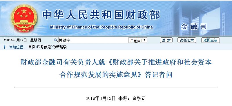 官方解讀 |《財政部關于推進政府和社會資本 合作規(guī)范發(fā)展的實施意見》