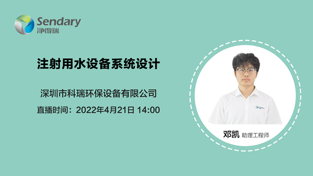 注射用水設(shè)備系統(tǒng)設(shè)計需要考慮哪些因素?如何做好URS分析?注射用水要滿足什么法規(guī)?設(shè)計基礎(chǔ)及系統(tǒng)工藝又有哪些?4月21號下午14:00,凈得瑞將為大家?guī)韺鲋辈ブv座:《注射用水設(shè)備系統(tǒng)設(shè)計》進(jìn)行解惑。圖一 《注射用水設(shè)備系統(tǒng)設(shè)計》點(diǎn)擊圖片進(jìn)入直播間 直播由凈得瑞助理工程師鄧凱在線分享,歡迎大家鎖定...