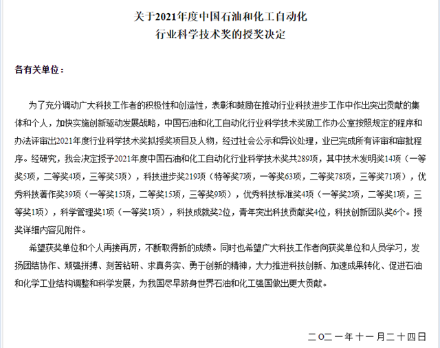 近日,由中國石油西南油氣田分公司天然氣研究院主持,四方光電參與的“天然氣中硫化物光譜檢測(cè)技術(shù)研究及應(yīng)用”項(xiàng)目榮獲2021年度中國石油與化工自動(dòng)化行業(yè)科技進(jìn)步一等獎(jiǎng)。中國石油與化工自動(dòng)化行業(yè)科學(xué)技術(shù)獎(jiǎng)是經(jīng)國家科學(xué)技術(shù)部批準(zhǔn)(國科學(xué)社證字第0109號(hào))設(shè)立的,主要評(píng)選在石油與化工...