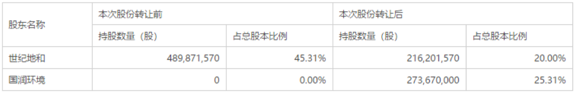 7月8日,清新環(huán)境(002573.SZ)發(fā)布關(guān)于股東協(xié)議轉(zhuǎn)讓股份完成過戶登記暨控股股東、實(shí)際控制人發(fā)生變更的公告。公告顯示,北京清新環(huán)境技術(shù)股份有限公司(以下簡(jiǎn)稱“公司”或“清新環(huán)境”)控股股東北京世紀(jì)地和控股有限公司(以下簡(jiǎn)稱“世紀(jì)地和”)與四川發(fā)展國(guó)潤(rùn)環(huán)境投資有限公司(以下簡(jiǎn)稱“國(guó)潤(rùn)環(huán)境”)于2...