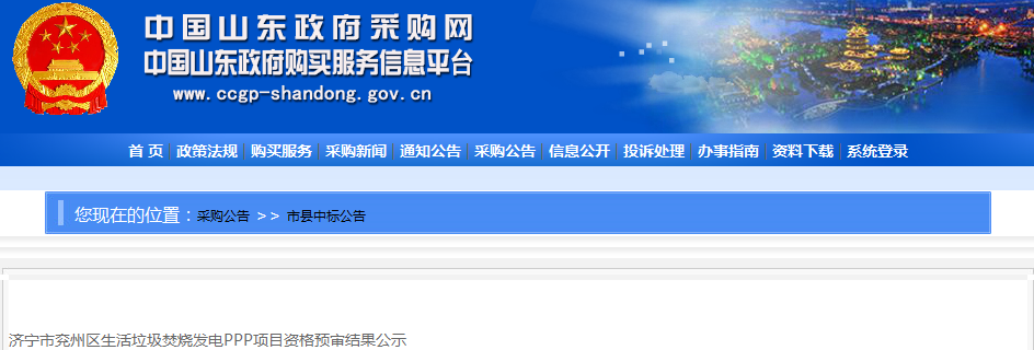 中國(guó)環(huán)聯(lián)網(wǎng)獲悉,11月27日,山東省濟(jì)寧市兗州區(qū)生活垃圾焚燒發(fā)電PPP項(xiàng)目發(fā)布資格預(yù)審結(jié)果公告。合格的申請(qǐng)人包括光大國(guó)際聯(lián)合體等三家企業(yè),具體名單如下:11月5日,該項(xiàng)目啟動(dòng)資格預(yù)審,根據(jù)公告顯示,項(xiàng)目概況如下:建設(shè)內(nèi)容和建設(shè)規(guī)模:本項(xiàng)目為濟(jì)寧市兗州區(qū)生活垃圾焚燒發(fā)電PPP項(xiàng)目,建設(shè)日處理垃圾150...