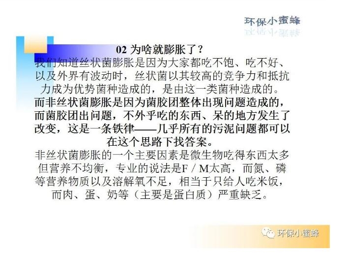 01 啥是非絲狀菌膨脹? 非絲狀菌膨脹是污泥膨脹問題中除去絲狀菌膨脹之外的情況,外觀看起來跟絲狀菌膨脹的情形差不多,都表現(xiàn)為污泥沉降性能嚴(yán)重下降。 03 如何應(yīng)對? 非絲狀菌膨脹可以通過鏡檢、SVI值進(jìn)行判斷。 發(fā)生膨脹,作為應(yīng)急措施,一般會選擇投加助沉劑或者是殺菌劑,但這是治標(biāo)不治本的方法,且投加...