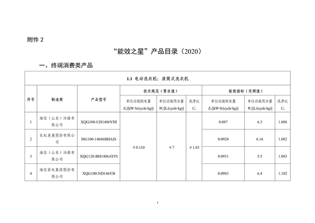 工信部發(fā)布《“能效之星”產(chǎn)品目錄(2020)》