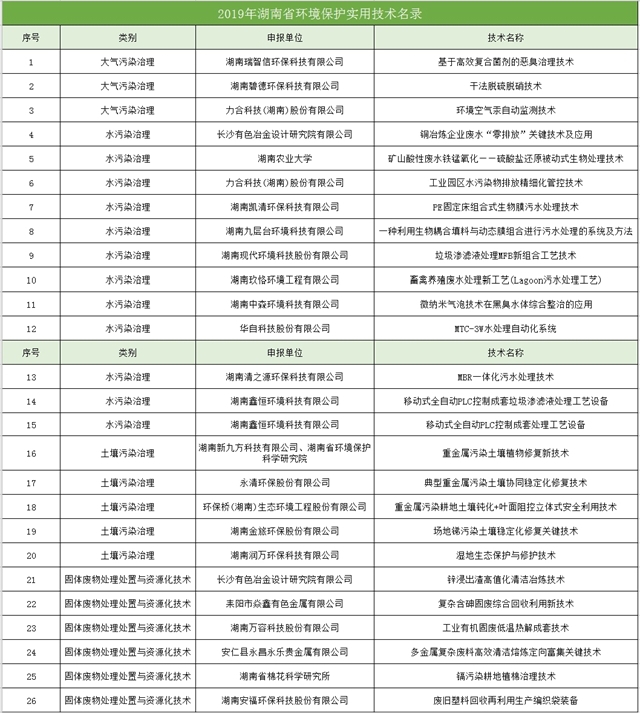 湖南省生態(tài)環(huán)境廳?湖南省科學(xué)技術(shù)廳關(guān)于發(fā)布2019年環(huán)境保護(hù)實(shí)用技術(shù)評(píng)選結(jié)果的通知