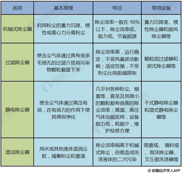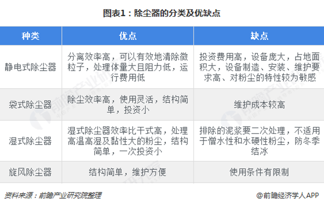 除塵設(shè)備行業(yè)基本概況分析:定義、分類 除塵設(shè)備是指把粉塵從煙氣中分離出來的設(shè)備,是大氣污染控制應(yīng)用最多的設(shè)備,也是除塵工程中最重要的設(shè)備,也被稱為除塵器。 根據(jù)工作原理分類,除塵器可分為靜電式除塵器、袋式除塵器、濕式除塵器及旋風(fēng)除塵器等。其中,靜電式除塵器除塵效率高、運(yùn)行費(fèi)用較低,但設(shè)備龐大、占地面...
