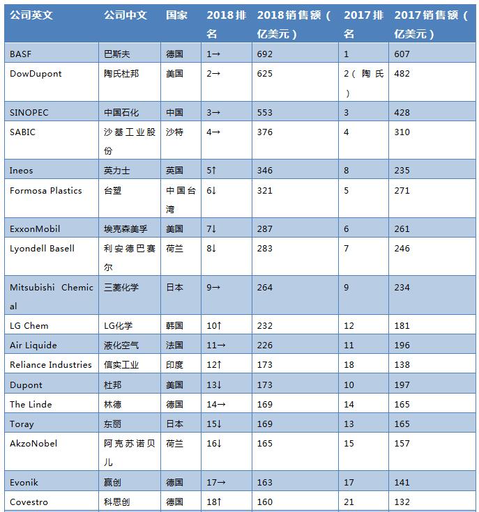 美國(guó)化學(xué)學(xué)會(huì)(AmericanChemicalSociety,ACS)旗下《化學(xué)與工程新聞》雜志(Chemical&EngineeringNews,C$EN)發(fā)布2018年度全球化工50強(qiáng)(C&EN’SGlobalTop50ChemicalCompanies)榜單,德國(guó)BASF公司連...