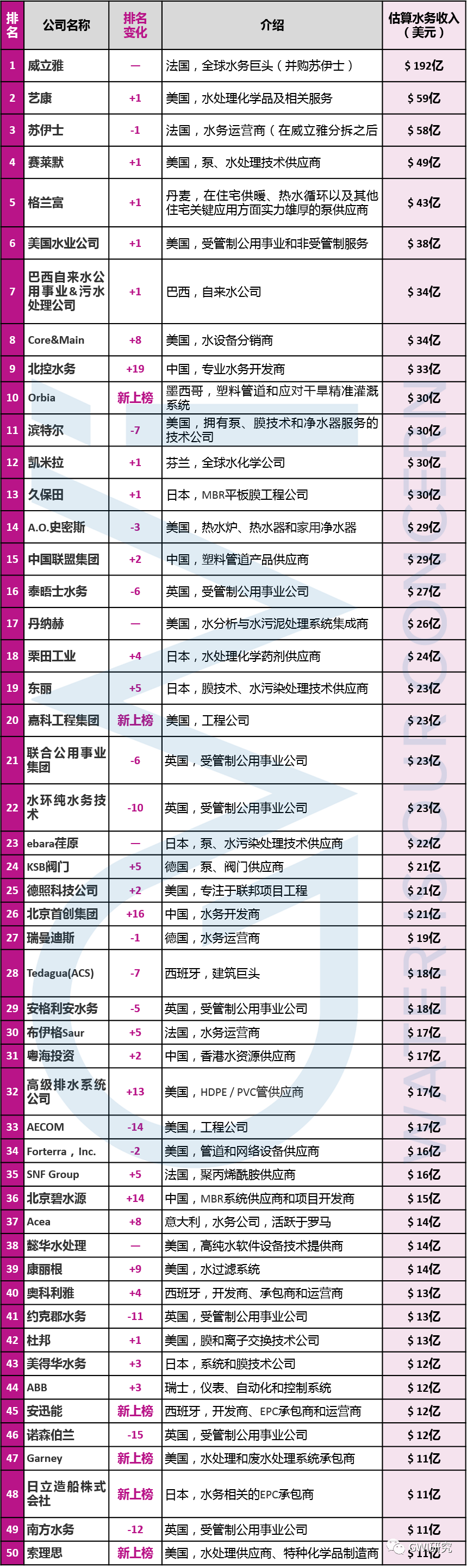 GWI全球水務(wù)公司排行榜又發(fā)布了。 每隔一段時(shí)間,GWI就要發(fā)布一張全球水務(wù)公司的排行榜單,有營收的,有處理量的,有利潤的,還有競爭力的。 作為全球?qū)I(yè)水務(wù)環(huán)保平臺(tái),GWI榜單的含金量頗高,從中可以獲取不少有價(jià)值的信息。更重要的是,它站在國際視角,可以為國內(nèi)企業(yè)提供更宏大的世界觀,從而跳出固有思維模...