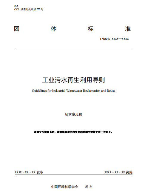 中國環(huán)境科學(xué)學(xué)會征求《工業(yè)污水再生利用導(dǎo)則(征求意見稿)》意見