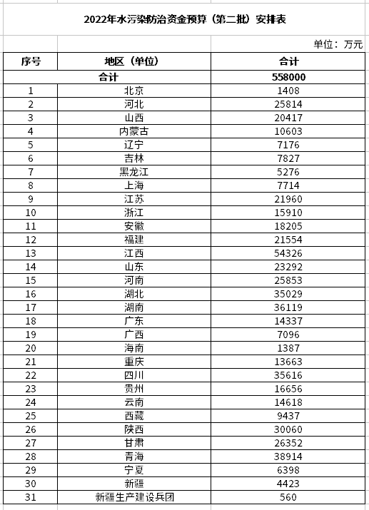 55.8億元,最大紅包給了江西!財政部下發(fā)2022年水污染防治資金預(yù)算(第二批)