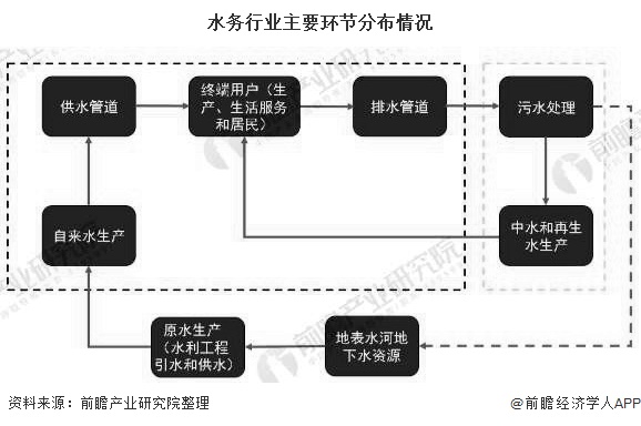 水務(wù)行業(yè)主要環(huán)節(jié)分布 水務(wù)行業(yè)又可分為原水生產(chǎn)與供應(yīng)、自來水生產(chǎn)和供應(yīng)、污水收集、污水處理、中水與再生水利用等多個環(huán)節(jié)。一般意義上是指供水與排水。除了傳統(tǒng)的供水和排水管理,水務(wù)產(chǎn)業(yè)還包括保護(hù)和擴(kuò)大水資源、節(jié)水減排、中水回用、淡化海水、用水需求管理、社區(qū)性計(jì)劃、集水區(qū)管理以及舉辦公共教育及增強(qiáng)節(jié)水意識...