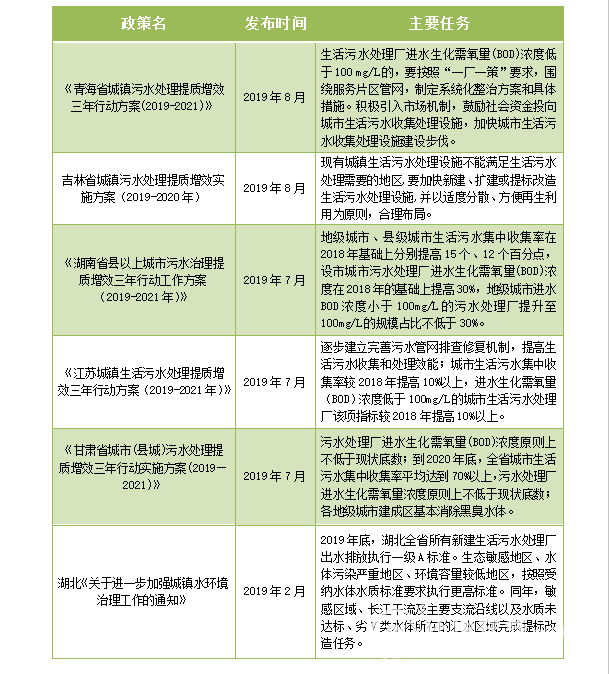 城鎮(zhèn)污水處理提標(biāo)改造,在2019年摁下了“加速鍵”。 “城市污水處理廠進(jìn)水生化需氧量(BOD)濃度低于100mg/L的,要圍繞服務(wù)片區(qū)管網(wǎng)制定‘一廠一策’系統(tǒng)化整治方案。”2019年5月,三部門聯(lián)合印發(fā)的《城鎮(zhèn)污水處理提質(zhì)增效三...