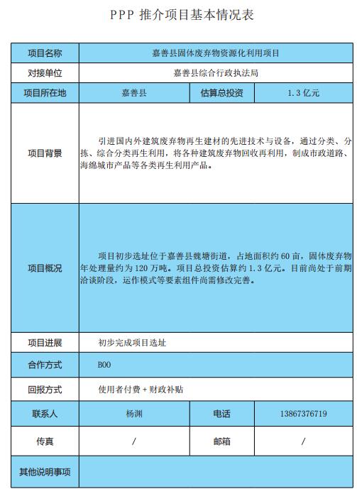 嘉興發(fā)改委發(fā)布2017年嘉興市PPP推介項(xiàng)目匯編。2017年嘉興市推介共95個(gè),總投資766.4億元。涉及、廢棄物處理等5個(gè)。北極星環(huán)保網(wǎng)整理如下:來源:北極星環(huán)保網(wǎng)