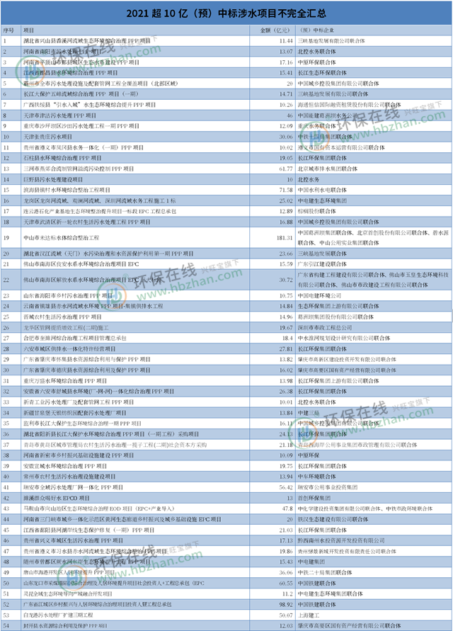 2021站在“十四五”的起點(diǎn)處,謀篇布局少不了,劃高環(huán)保標(biāo)準(zhǔn)也是必然的。“資源化、低碳化”,環(huán)繞著它們前進(jìn),沒錯(cuò)了! 據(jù)環(huán)保在線不完全統(tǒng)計(jì),2021年(預(yù))中標(biāo)的項(xiàng)目超50個(gè),投資總額超1450億元。這些(預(yù))中標(biāo)的涉水項(xiàng)目呈現(xiàn)哪些特點(diǎn)?環(huán)保在線已經(jīng)匯...