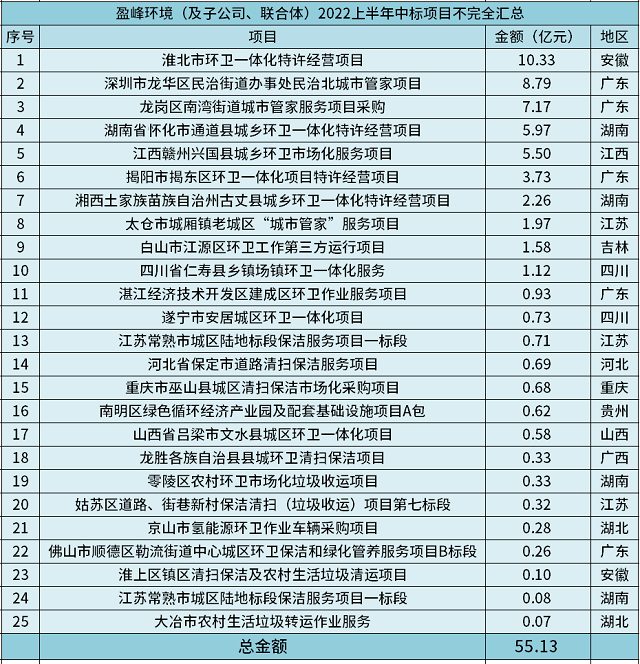 總55.13億!盈峰環(huán)境化身億級項目“收割機”,2022上半年火力全開!
