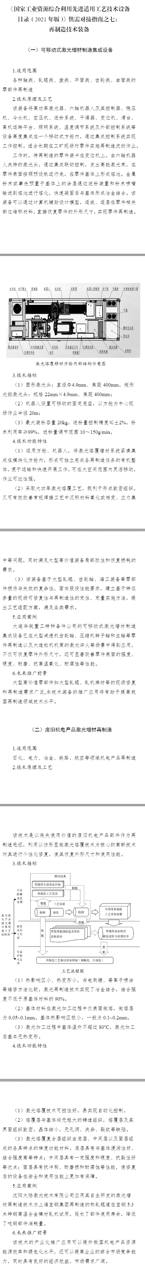 5月30日,工信部發(fā)布《國(guó)家工業(yè)資源綜合利用先進(jìn)適用工藝技術(shù)設(shè)備目錄(2021年版)》供需對(duì)接指南之七——再制造技術(shù)裝備。工信部明確,該目錄包括2項(xiàng)再制造技術(shù)裝備,涵蓋激光增材制造集成及設(shè)備、廢舊機(jī)電產(chǎn)品激光增材等再制造的工藝技術(shù),處于應(yīng)用階段。 原標(biāo)題:《國(guó)家工業(yè)資源綜合利...